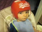 As of this week though, Jackson is done with the helmet. Children’s skull plates become less malleable after the age of one, making the helmet less effective. And, really, we were ready to be done with it anyway. He didn’t mind it (he rarely fusses at anything, helmet included), but its time had come. Of course, we jazzed the helmet up with some Reds stickers, giving Jackson more of a Jay Bruce/Joey Votto look (but definitely NOT a Drew Stubbs look). So, like the Reds, the helmet is over and we bid it farewell.