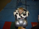 This week was a big social week. In addition to the Dalton Foundation event, Jackson was invited to meet “Sensitive Santa.” No, this was not a Santa who wanted to watch romantic comedies and ask you how you really feel about this or that. This Santa was a trained physical therapist who accomodated special needs children and the various issues that they may have with a normal (insensitive?) Santa. We were invited to the event by Help Me Grow. While I don’t think that Jackson really needed a special environment, it was still a very nice event. It was held at a therapy center that had equipment and toys for children of all ages.