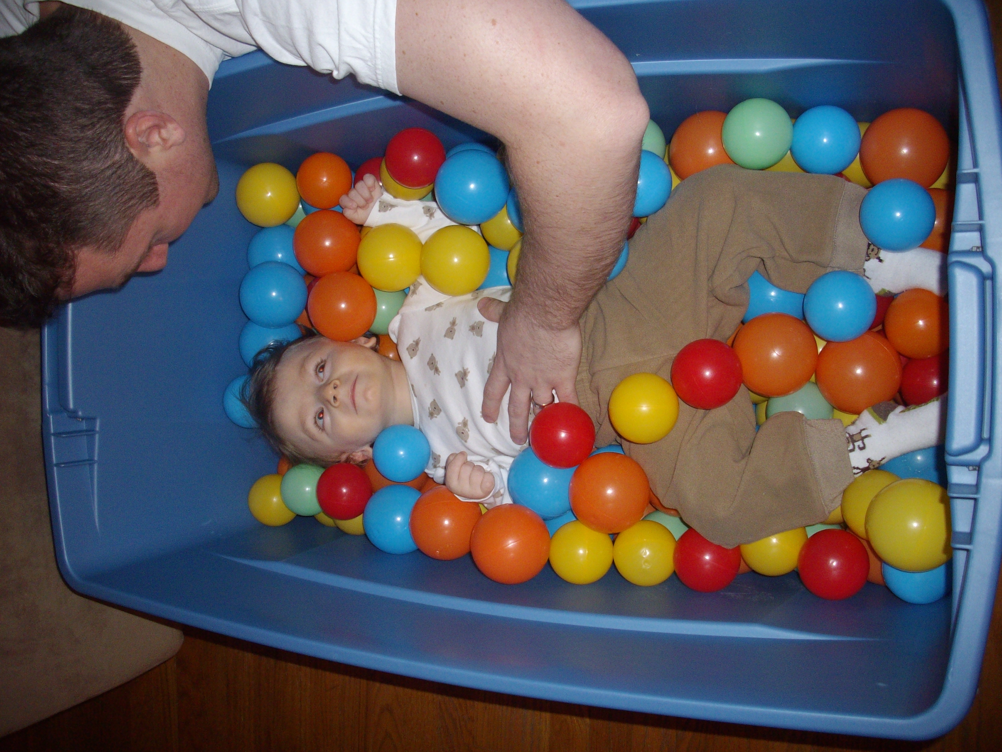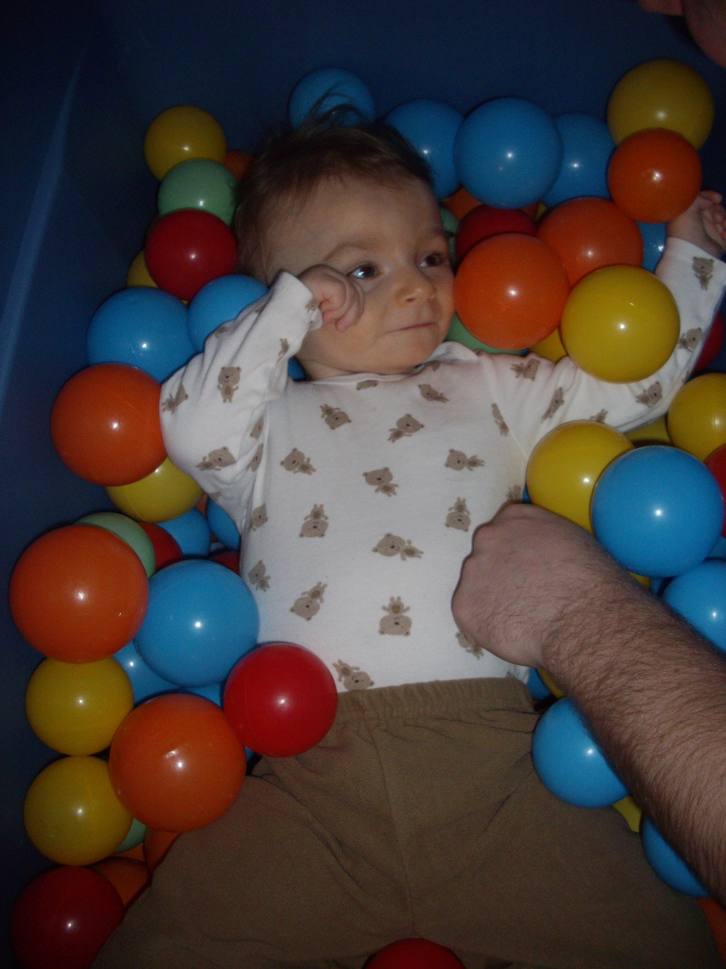 I went to a Moms of Multiples rummage sale this weekend in search of new toys for Jackson. I didn’t know what I was looking for, but I knew that I’d know it when I saw it. My most exciting purchase was balls!!! Lots and lots of balls!