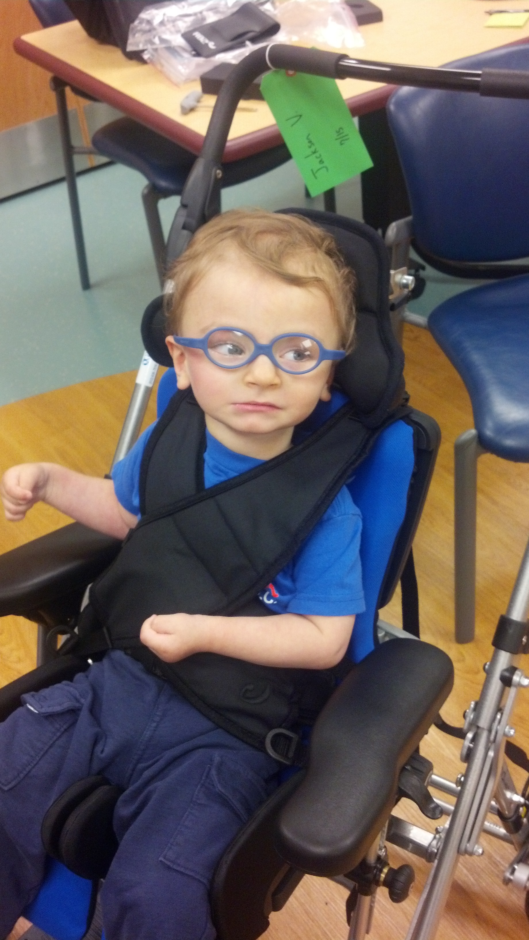One of Jackson’s more prominent disabilities is his lack of body control. He is more or less a limp noodle. We work hard everyday to develop muscle control and memory, but it is a long journey. As such, Jackson requires seating and other equipment that holds his head in place, straps him in, and keeps him secure. Baby products are great for this. Really great. But when a child grows out of them but still needs the control they provide, there are not a ton of options. Without something like the wheelchair, Jackson couldn’t go out to restaurants, couldn’t go over to other people’s homes…excluding his grandparents who have outfitted their homes with anything he could need and then some.