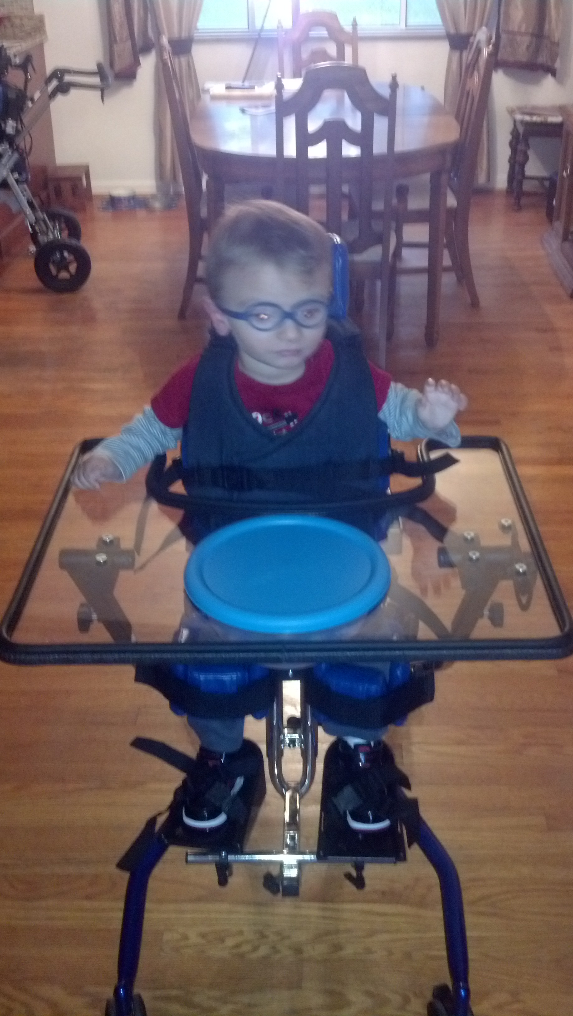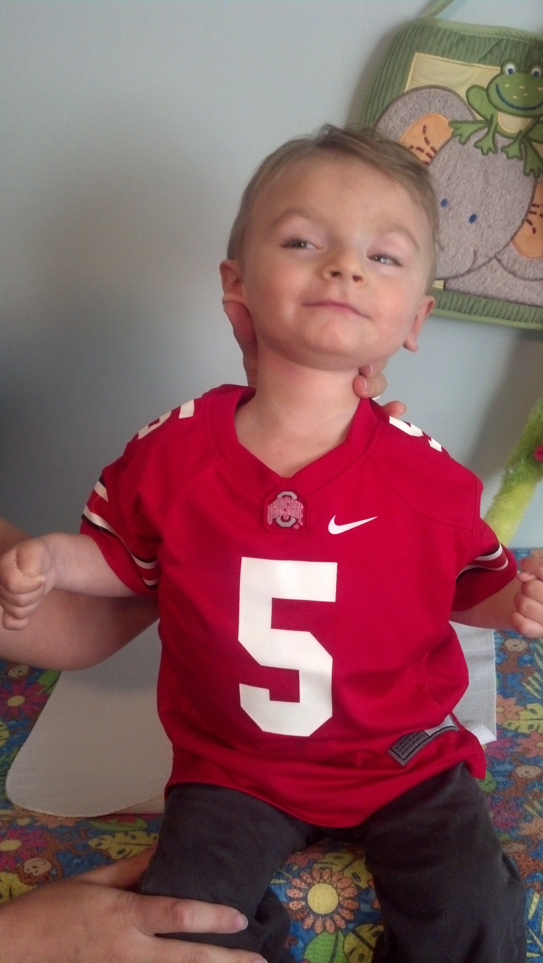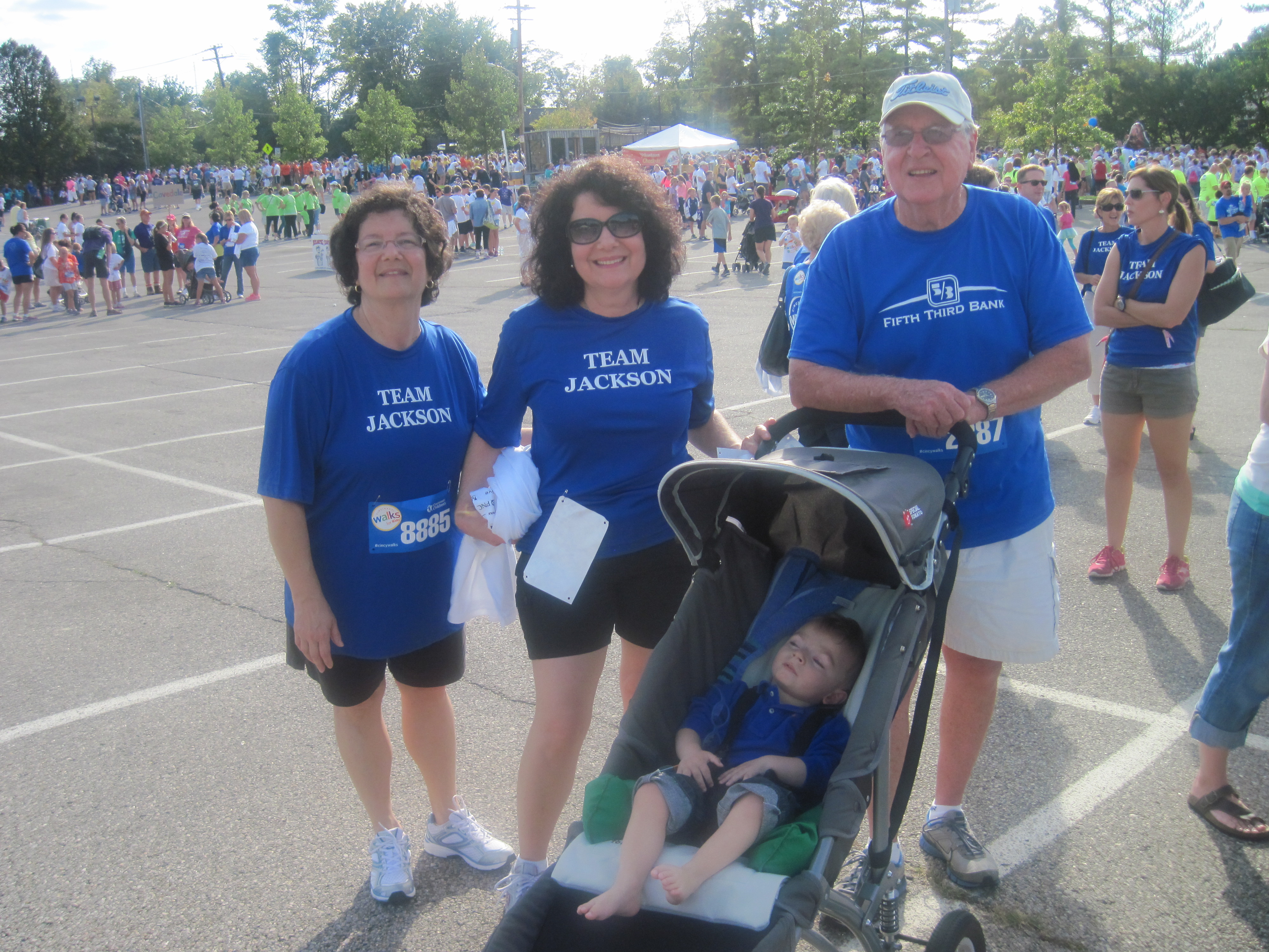 Its been sometime since I took to the interwebs to post about Young J (not to be confused with Young Jeezy to those fans of bad hip-hop) and am glad to say that Jackson is doing fantastic.  A lot has happened in that timespan.  We recently had parent-teacher conferences at Perlman Center and, to no one’s surprise, Jackson is a star pupil.  He is working towards many goals, including improving his head control, strengthening his torso, and vocalizing more.  If you are able to elicit it out of him, the vocalization is just adorable.  We also participated in the Children’s Hospital walk, where we raised almost $18,000 for the Perlman Center.  It was a great effort from all of our friends and family.  Its also quite good that we enjoy our friends and family, as the walk took approximately two hours to go a half mile through the zoo.  I mean, I love my wife and all, but talking to her from 120 minutes…come on folks, that’s pushing it.  We recently got some family photos taken as gifts for my parents.  Of course, we went ahead and got the super-ultra-premium-elite package, so that we could get around 1300 shots of Jackson.  Scroll down and you will agree that the purchase was well worth it.  (Side note – the photographer could possibly have been a Stevie Nicks impersonator, as she not only resembled the aged diva, but also wore a shawl and casually peppered a Stevie Nicks reference into the photo shoot.  Dork.)
