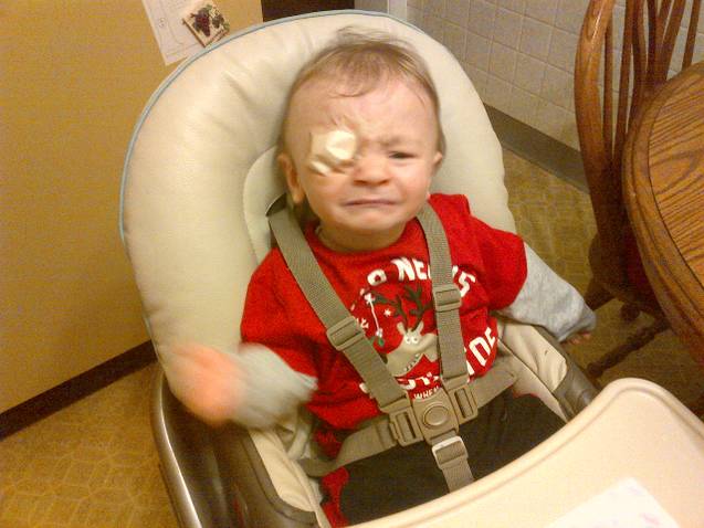 Arrrr matey! The eye patch. I’m glad to be done with that. We had to put a patch on his eye one hour a day for a few months. The funny face is not from the eye patch. It’s because we gave him some ice cream. He doesn’t like the cold.