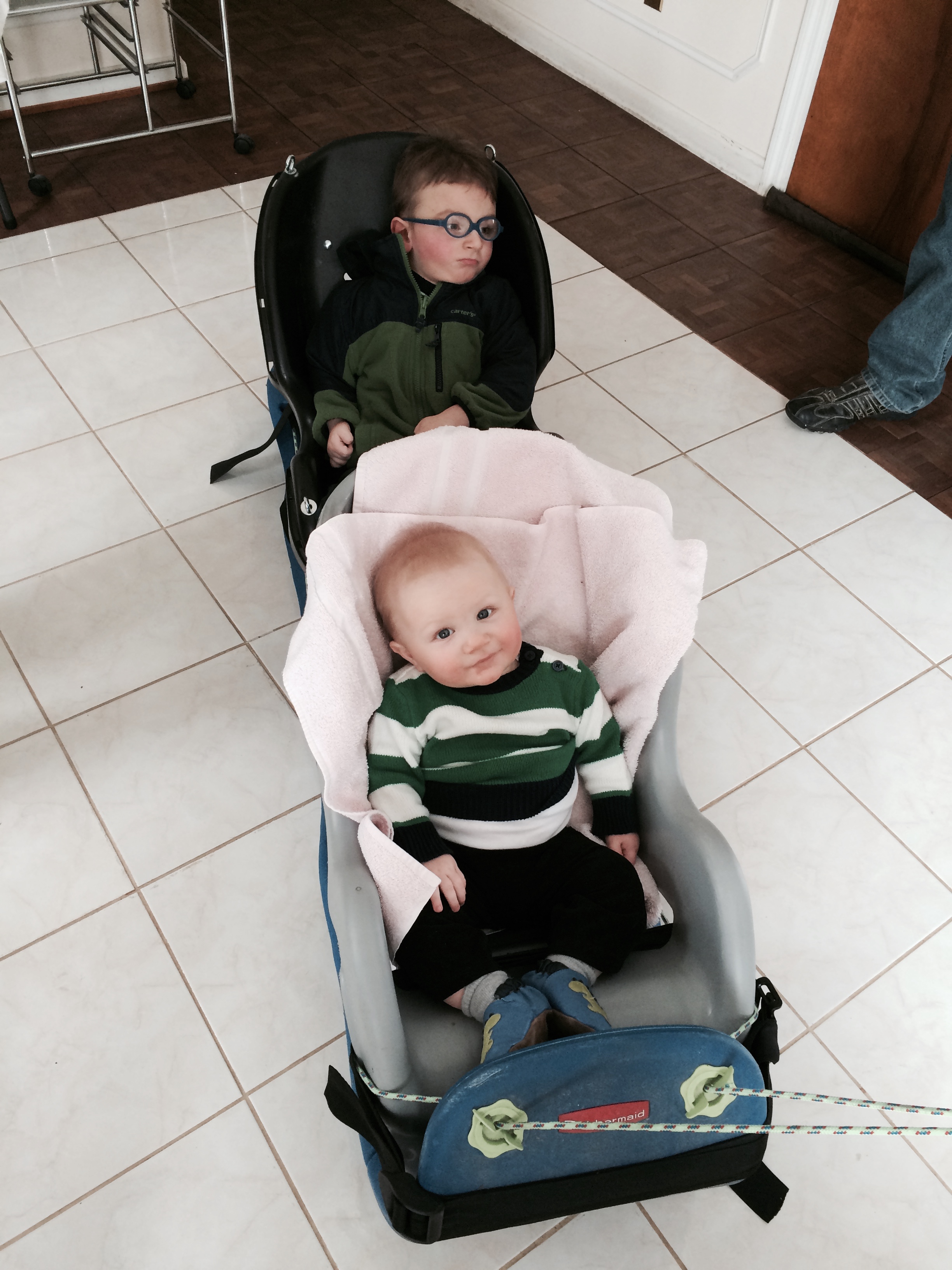 Case in point: the car seat. The forward-facing car seat has become an invaluable accommodation for us. Not only does it function as a car seat, but Jackson uses it as a swing, ground level chair, and, most recently, a bobsled.
