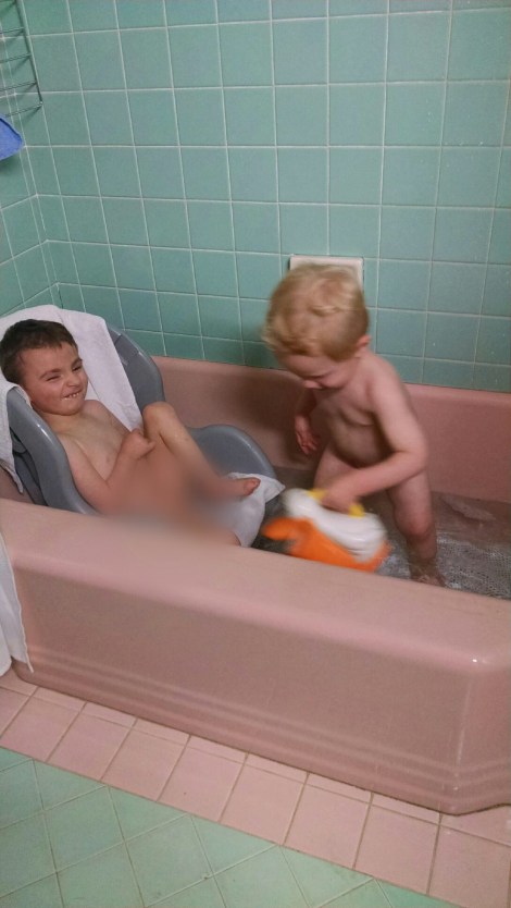 I bathed my kids together so happy that you all get R done with yours as well. I saved even more time by brushing teeth in the tub too, so much fun spitting in the tub lol.