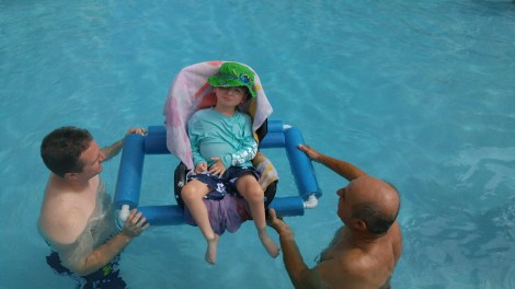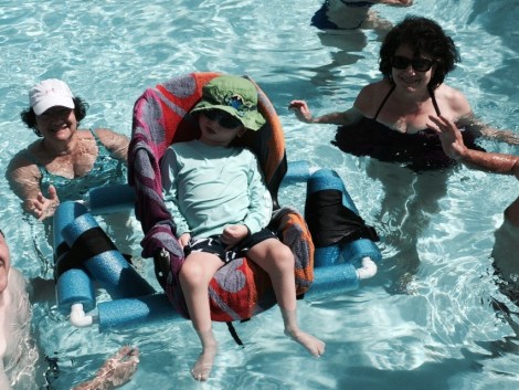 i told everyone to let go so i could take a picture of Jackson floating by himself. If you look, you will see everyone diligently looking at the float and waiting to get their hands back on it.