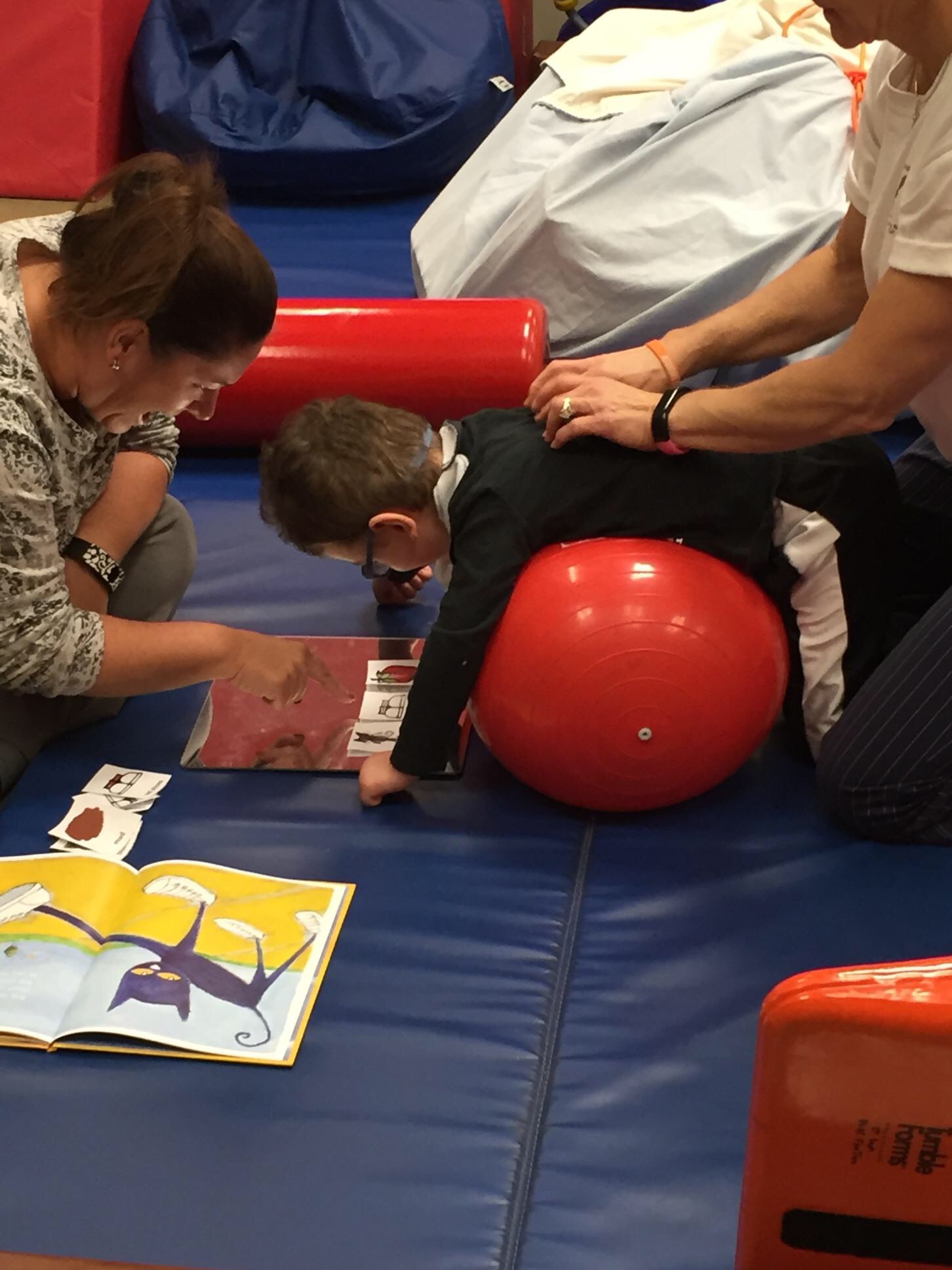 Jackson is getting better at using an eye gaze communication device. This is a specialized tablet that can sense what image on the tablet his eyes are looking at. For example, a painting app may be open on the tablet and Jackson can pick what colors he wants to paint with using his eyes. His therapists have also told us he is able to use the eye gaze communication device to inform them that he is “all done” and wants to “go home.”