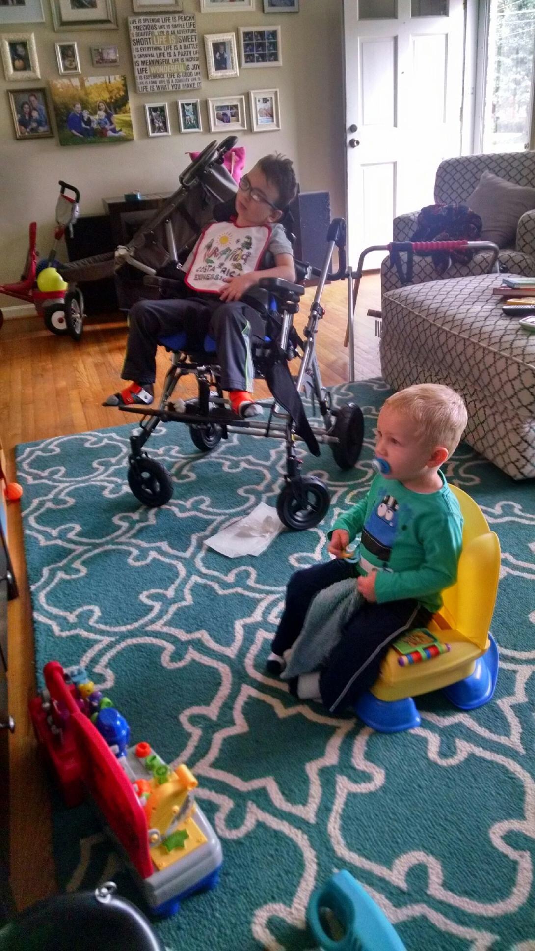 Jackson is more aware of his surroundings. This may seem insignificant but I cannot explain how awesome this is. Jackson knows if someone is on his left, right, or above him and he will turn his head according to where people are around him. For example, if Jackson is laying on the couch and Luca sits down behind Jackson’s head, Jackson will arch his back and stare backwards to look at his brother.
