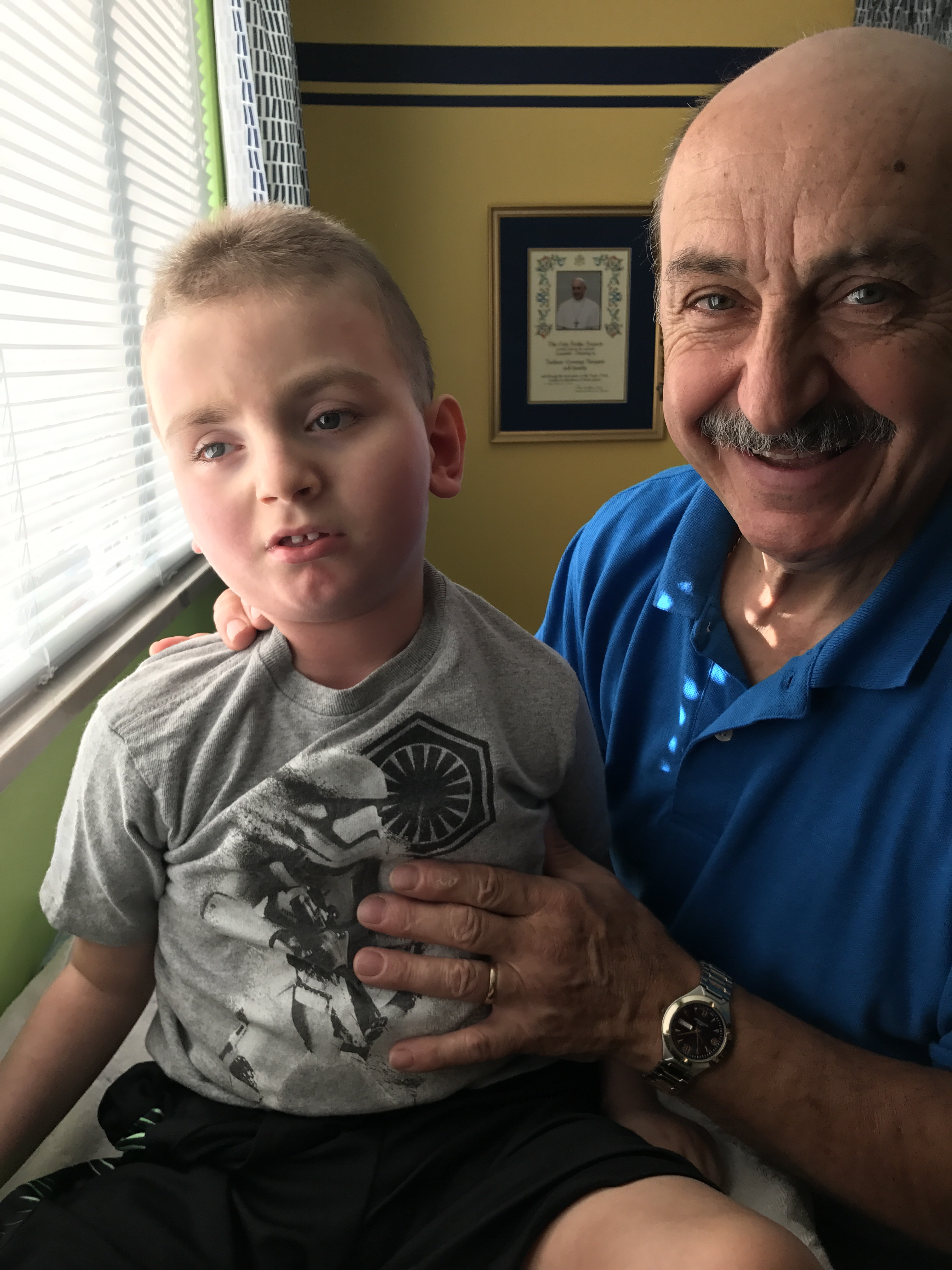 My dad has been cutting Jackson’s hair for the past few years. We usually take the headrest off the wheelchair and someone holds his head and trunk while my dad cuts his hair.