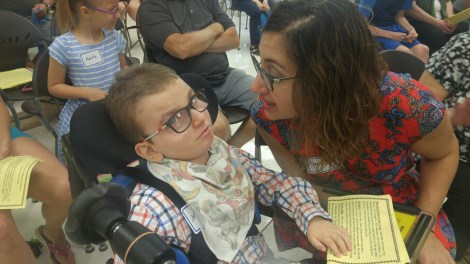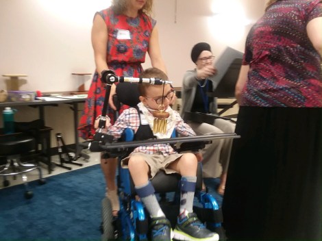 Jackson played the chimes to the song Lava You while his music therapist played the ukulele and sang. We spent a few months practicing. Some of the practices went well and, during others, Jackson had no interest in hitting his chimes. So, I was very proud when Jackson hit his chimes several times throughout his performance.