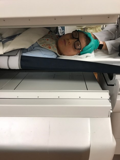 Two weeks ago, I took Jackson to the hospital for a parotid scan to see if the upper salivary glands are still producing saliva. The radiology tech injected Jackson with a special type of radiation that travels to his salivary glands and lights up on a scan if the glands are producing saliva.