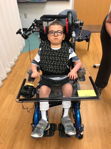 When not making ER trips and inpatient visits, we have been working at the Perlman Center on communication. This is a video from Jackson’s class where he is using eye gaze to communicate. The screen can sense what picture he looks at and will then say the word out loud if he looks at a specific symbol for a designated period of time (It’s either .5 or one second). We are grateful to live in a time and place where this technology is possible.