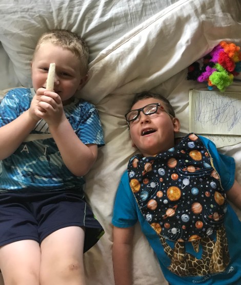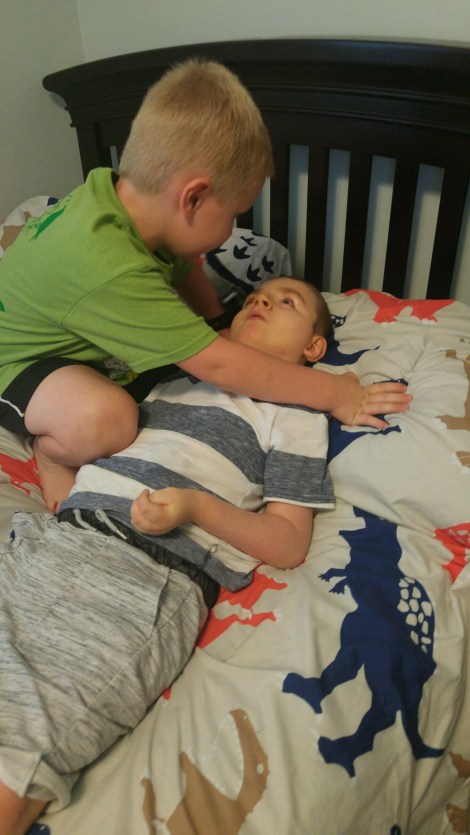 This was not a great time for us. The six weeks Jackson was in his double leg cast and hip brace were stressful. To top everything off, our basement flooded and Jackson caught a stomach bug, which landed us back in the hospital for three days.