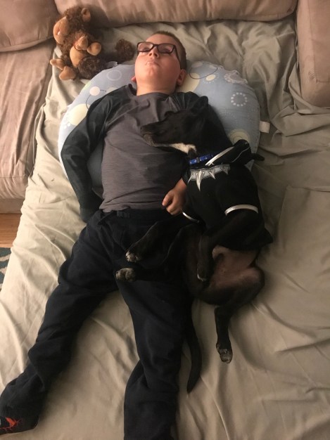 2019 – This was a better year than last year although Jackson had his longest hospital stay to date (12 days in July). We also adopted a great puppy who loves to cuddle with Jackson and play with Luca.